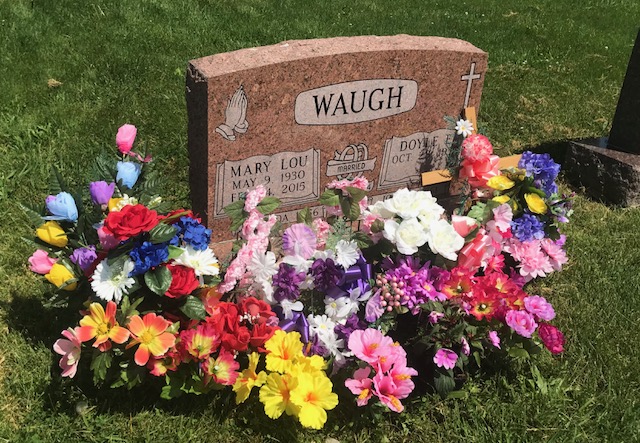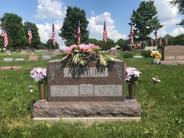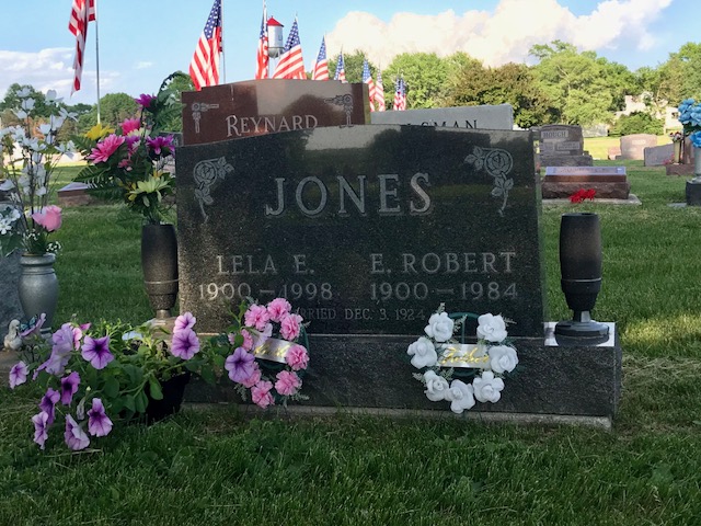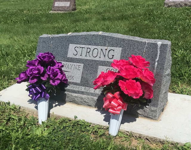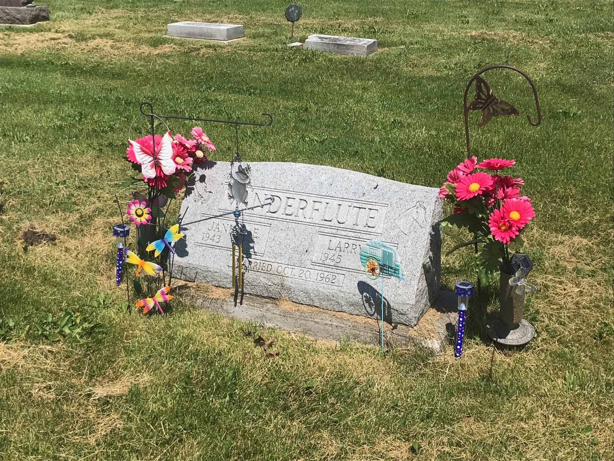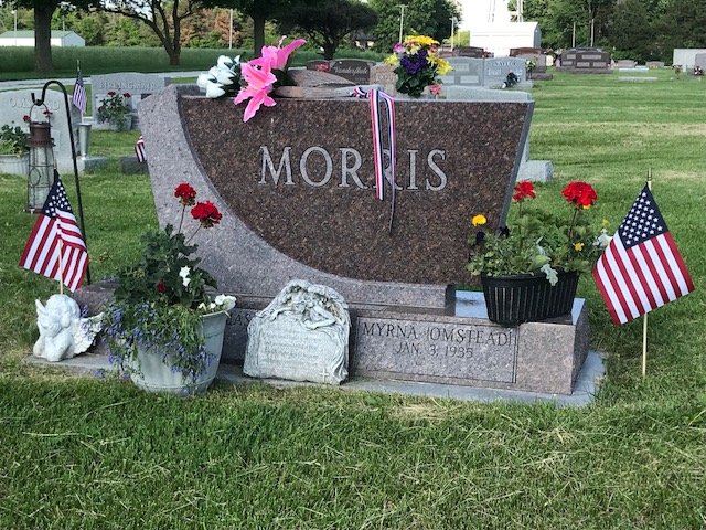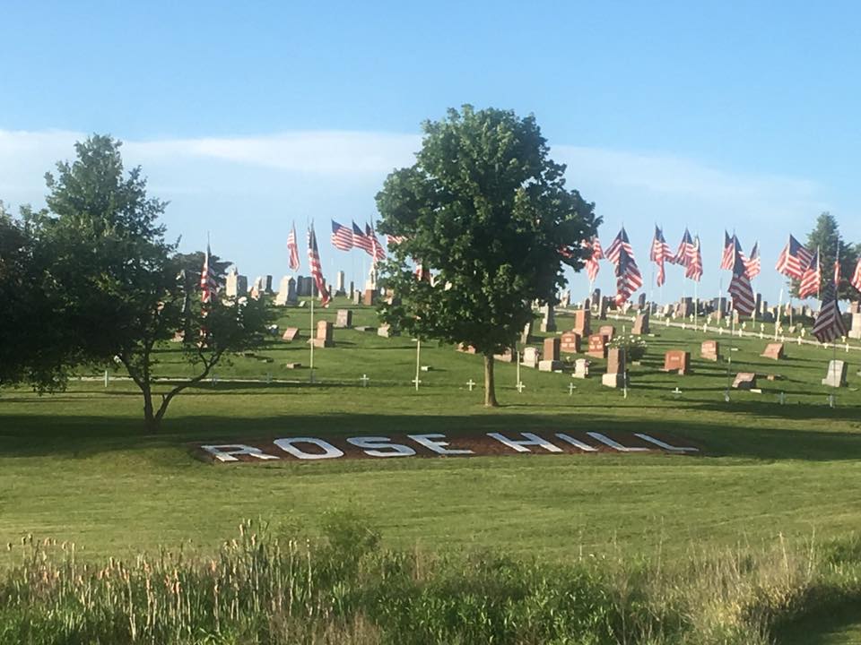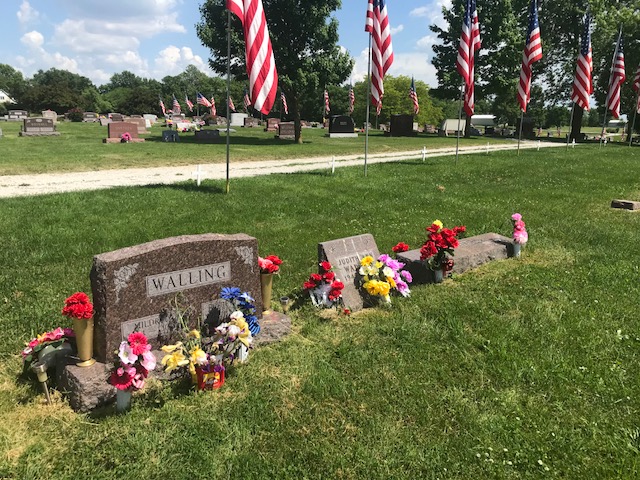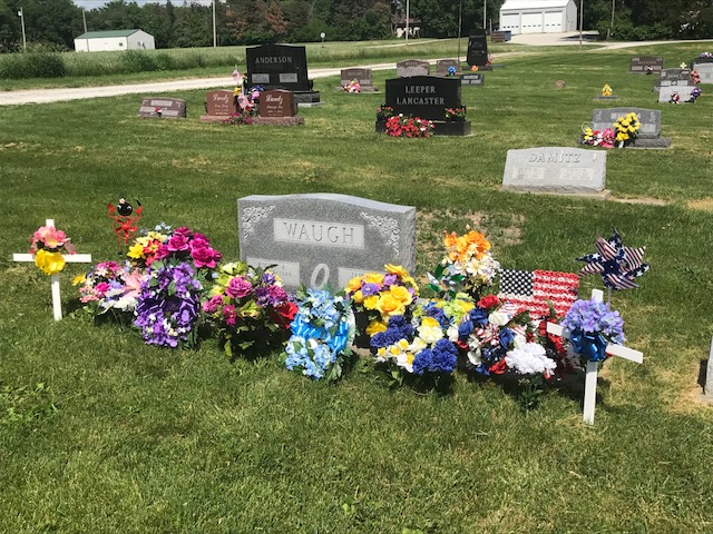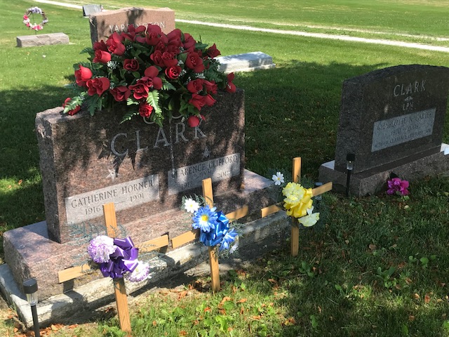 A collection of photos, to show some of the decorated memorials and flags at Lamoni Rose Hill.
