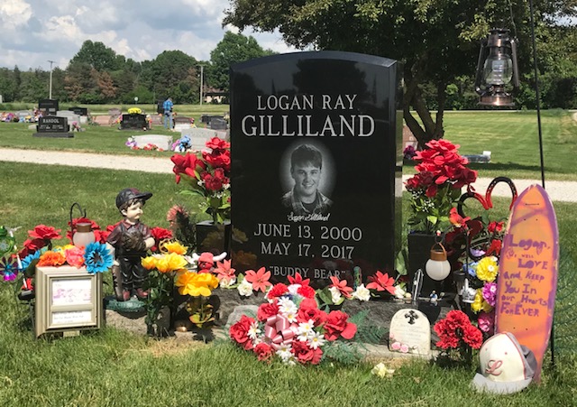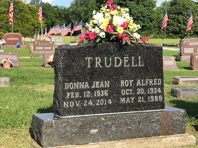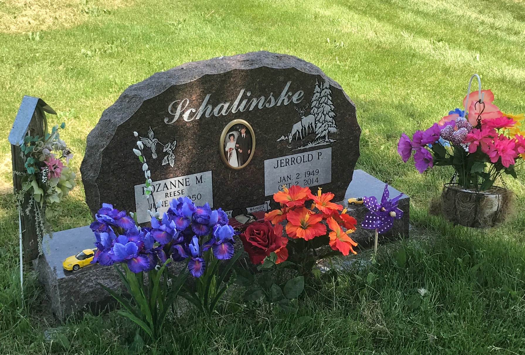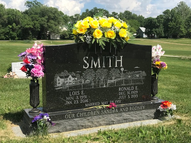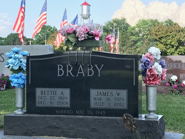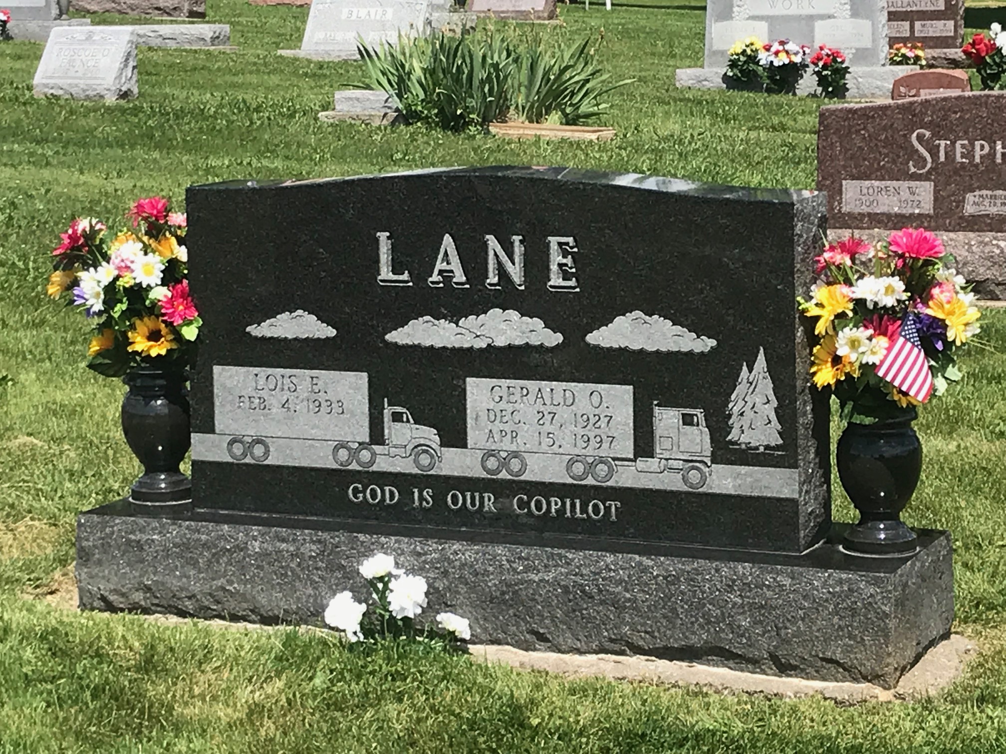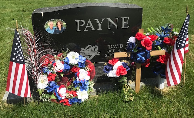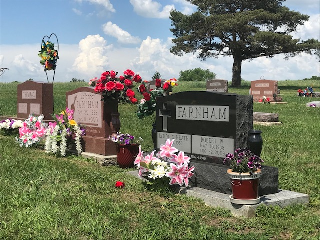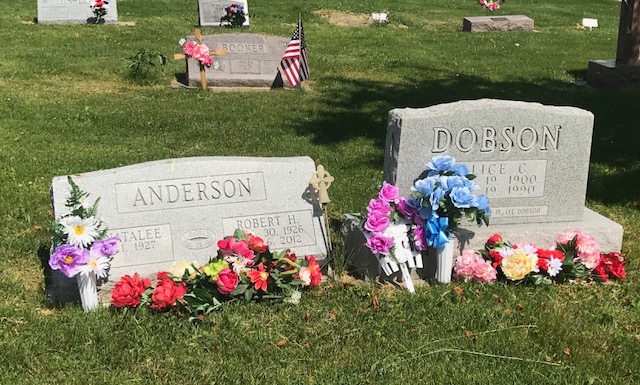 A collection of photos, to show some of the decorated memorials and flags at Lamoni Rose Hill.
