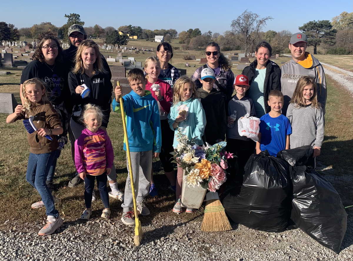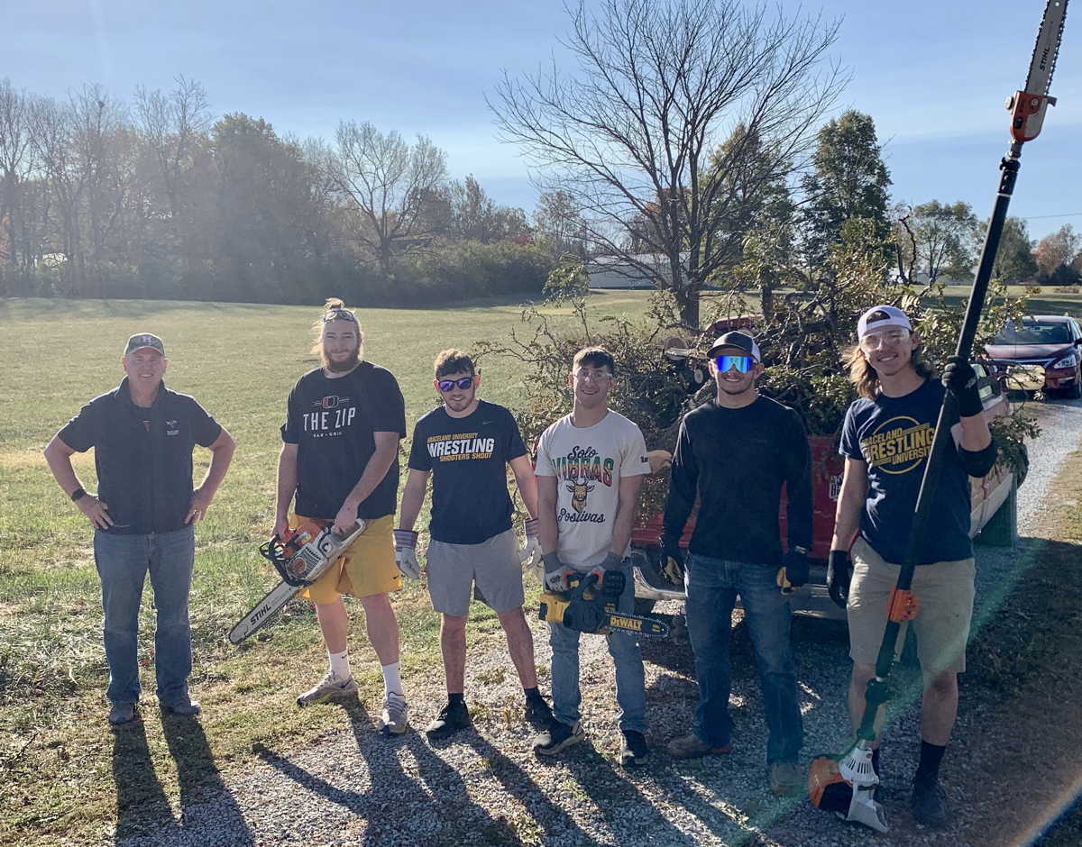 On Saturday, October 22, 2022, Lamoni volunteers participated in the annual Make A Difference Day from 9 a.m. to noon. Eight wrestlers from the Graceland University Wrestling Team came to cut and remove large tree limbs from the cemetery, under the direction of Board President Kelly Everett. They removed 11 large pickup truckloads of logs and branches to the city brush dump.